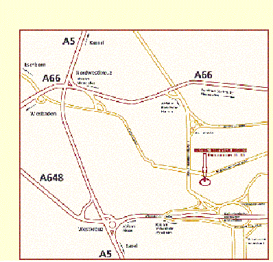 Aus dem Südosten (A3 von Würzburg) oder Westen (A3 von Köln) am Frankfurter Kreuz auf die A5 Richtung Kassel weiter fahren bis Abfahrt Rödelheim, diese führt in den Katharinen-Kreisel (Opel-Rondell). Im Opel-Rondell die 4. Ausfahrt vor der Autobahnauffahrt rechts (den Kreisel fast einmal umrunden) in die Ludwig-Landmann-Straße abfahren, an der ersten Kreuzung rechts in die Rödelheimer Landstraße einbiegen. Im dritten Haus auf der linken Seite befindet sich die ELTEC-SERVICE GmbH. Aus dem Norden (A7 von Hannover) bis Hattenbacher Dreieck oder Osten (A4 von Erfurt) bis Kirchheimer Dreieck fahren, dann auf die A5 Richtung Frankfurt bis Abfahrt Rödelheim, weiter wie oben. Aus dem Südwesten (A5 von Basel) auf der A5 bis Abfahrt Rödelheim fahren, weiter wie oben. |